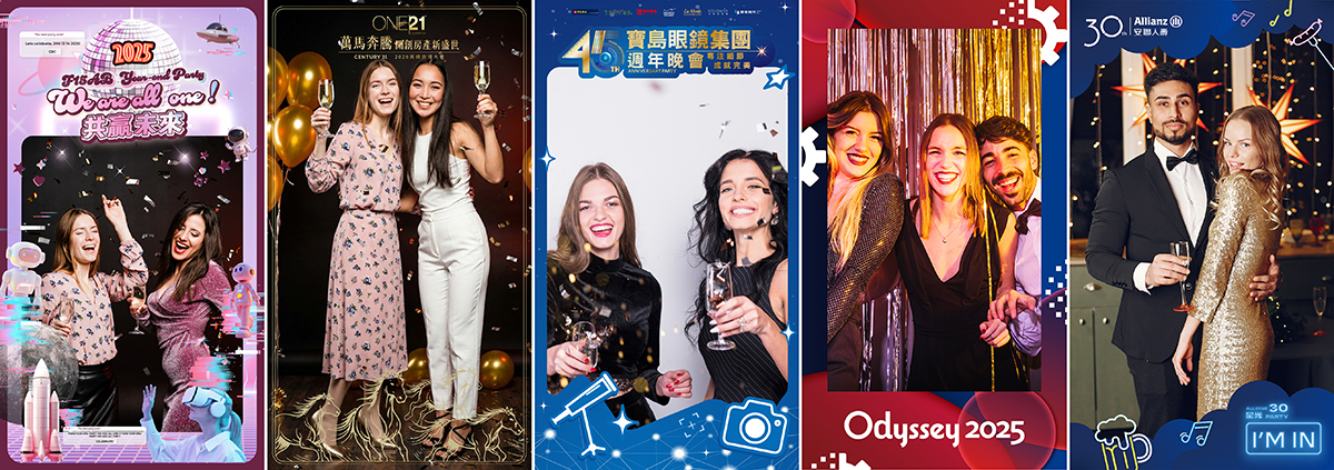 客製化專屬邊框,記錄專屬情感: 系統能貼心地將 Logo 和活動主視覺設計進影片邊框。這樣一來,影片不僅是個人的歡樂記錄,更是一份企業專屬的紀念品,有效地提升企業凝聚力,讓這份活動記憶更有意義。