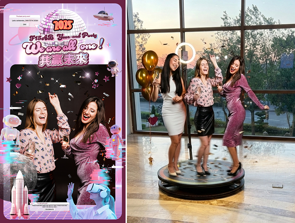 在大型尾牙活動中,導入 360 Photo Booth 作為現場互動核心,讓同仁不只拍照留念,更能即時下載專屬動態影片分享到社群。