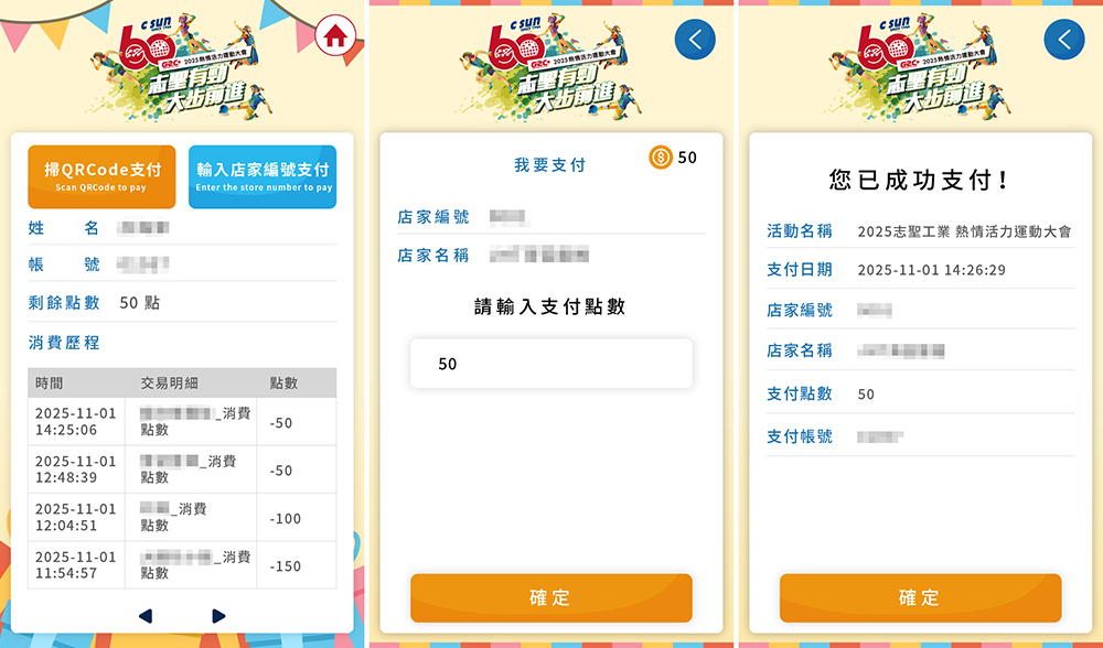 系統,員工家庭使用手機上的數位點數,在園遊會攤位即時掃碼結帳。這不僅加速了交易流程,讓親子家庭將更多時間留給遊戲,也讓主辦方能精準掌握每一筆消費數據。