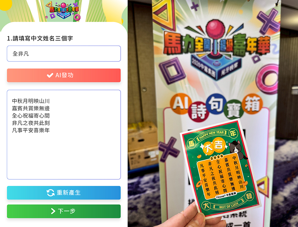 在數位轉型的浪潮下,企業活動的互動方式也在與時俱進。中嘉寬頻 在近日舉辦的台北、高雄兩場大型活動中,【藝力國際整合行銷聯手藍訊科技,將尖端的 AI 技術轉化為富有文化底蘊的員工福利。透過AI 姓名藏頭詩系統,中嘉寬頻成功在南北兩地同步營造出尊榮且溫馨的活動氛圍,展現了企業對人才關懷的極致細節。