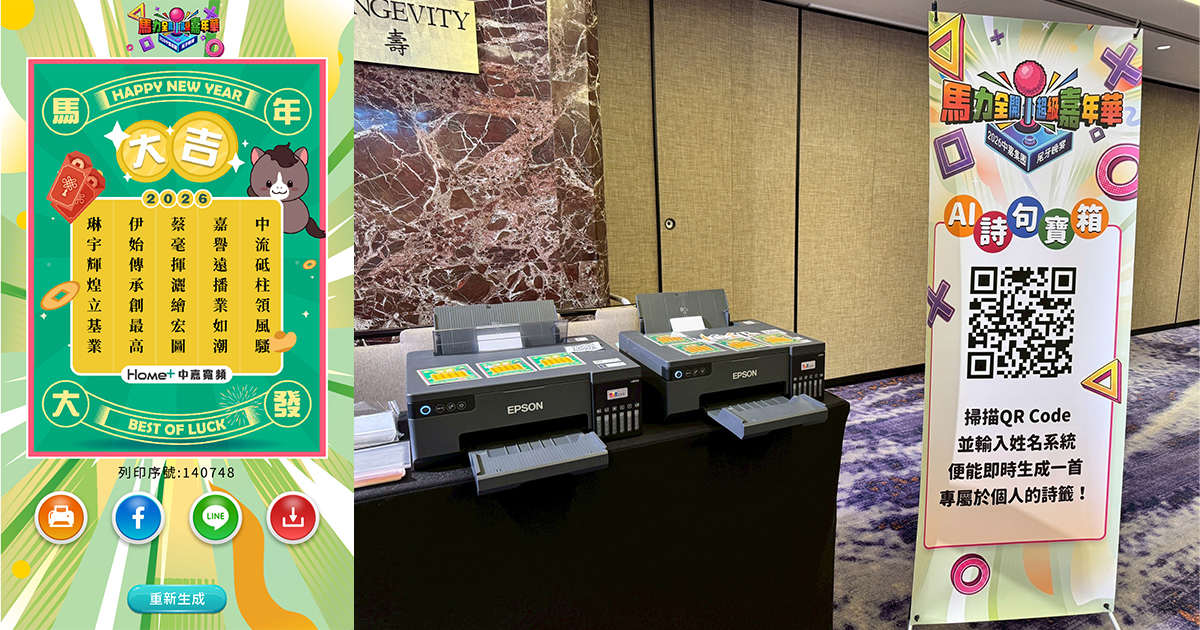 數位互動最怕「玩過就忘」,因此藝力國際特別導入「快拍印技術」。當 AI 創作完成後,同仁可即時列印出合成活動視覺底圖的實體詩籤。這份具有個人化特徵的「數位詩籤海報」,不僅代表了同仁在中嘉寬頻的專屬紀錄,更成為活動現場同仁們交換心情、拍照打卡的互動橋樑,成功將數位科技轉化為最真實的團隊凝聚力。