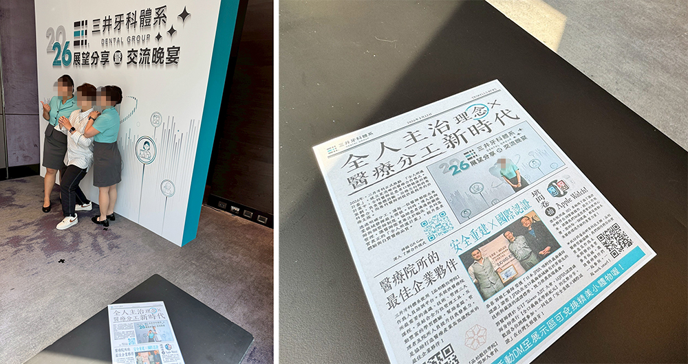 - 【2026三井牙科體系展望分享暨交流晚宴】將品柏牙科與三井牙科體系的視覺元素、年度口號融入報紙版面。賓客拿到的不只是一張照片,更是一份具備品牌價值的實體紀念品。