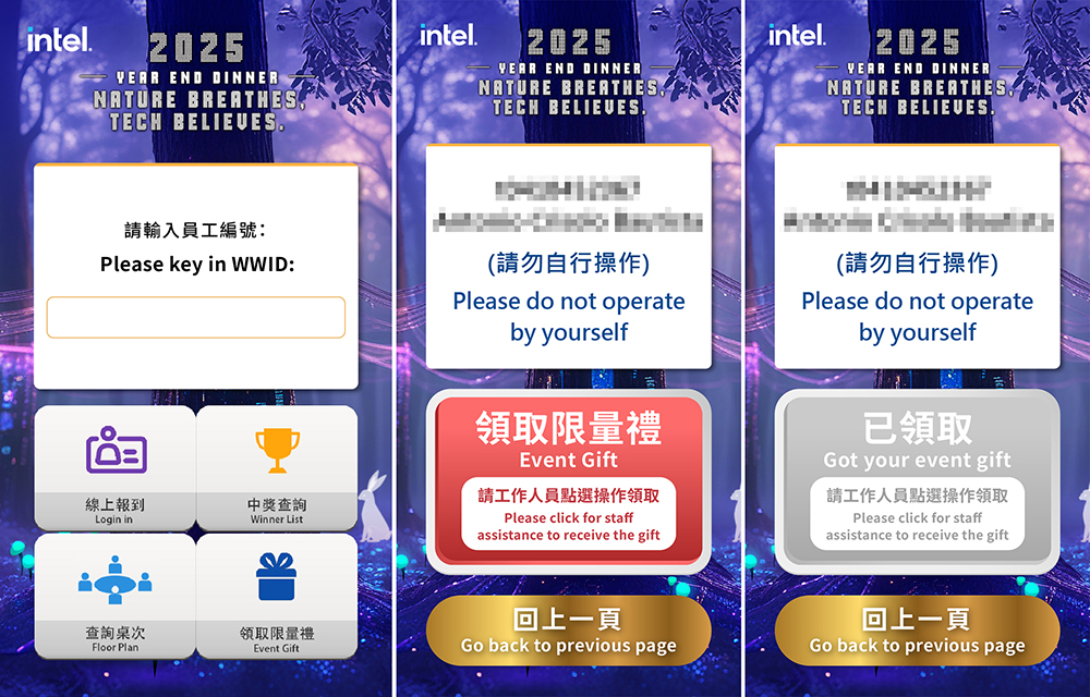 藍訊春酒尾牙系統化管理助力Inte 2025年終尾牙+線上自行報到+領報到禮+l電子抽獎系統+查獎+查桌次